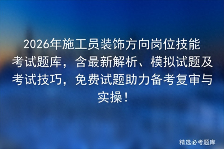 安全生产模拟考试一点通平台发布施工员装饰方向岗位技能题库,覆盖考试内容、报名信息、新版试题及解析,提供模拟考试、理论在线测试和实操视频,助您高效掌握考试技巧,轻松通过考试!